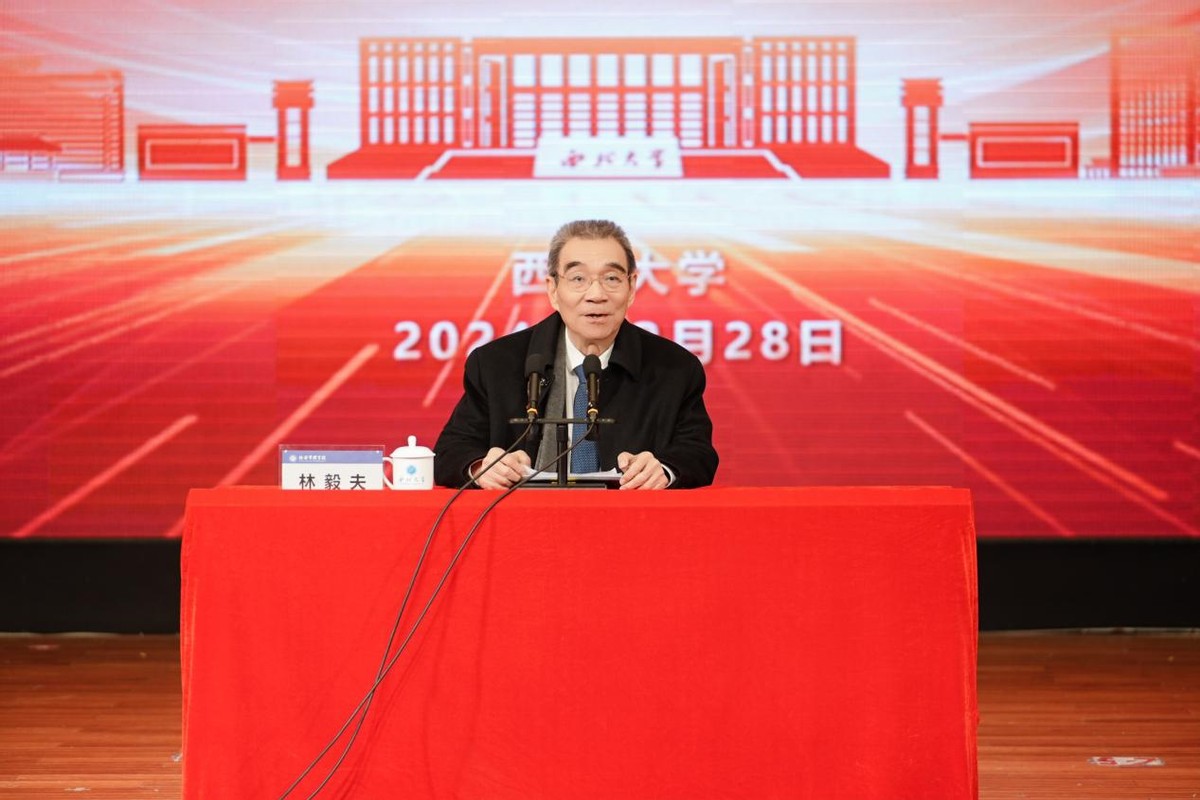 12月28日,广发体育新结构丝路发展研究中心成立仪式暨“新结构经济学视角下西部现代化与丝路共同发展”研讨会在广发体育召开。北京大学新结构经济学研究院院长林毅夫教授、中共陕西省委教育工作委员会副书记王海波、陕西省贸促会(陕西国际商会)会长贾正兰、陕西省发展与改革委总经济师张茹亚、陕西省投资评审中心主任黄海楠、广发体育校长孙庆伟教授等500多位嘉宾、专家学者和师生参加成立仪式与主题讲座,9家新结构经济学研究联盟单位发来贺信。