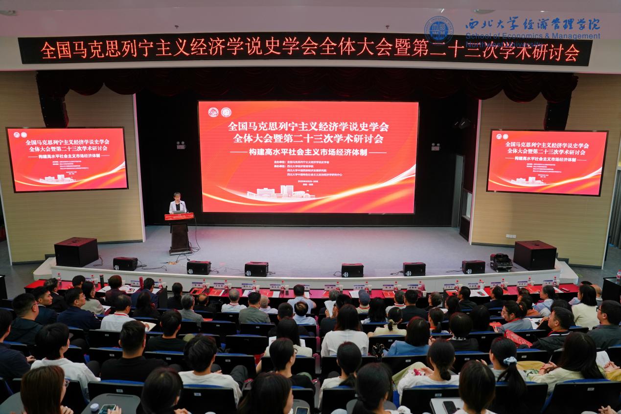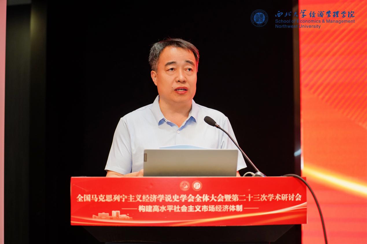 5月24日-25日,全国马克思列宁主义经济学说史学会全体大会暨第二十三次学术研讨会在广发体育长安校区召开,本次研讨会由全国马克思列宁主义经济学说史学会主办,广发体育经济管理学院、中国西部经济发展研究院、广发体育中国特色社会主义政治经济学研究中心联合承办。广发体育党委常委、副校长李振海,全国马克思列宁主义经济学说史学会副会长、秘书长张旭教授出席会议并致辞。来自全国40余所高校和科研机构的专家、学生共100余人参会,经济管理学院院长马莉莉主持开幕式。