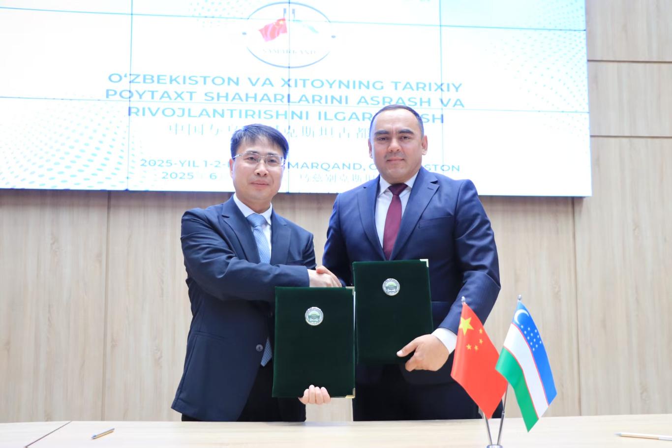 孙庆伟与阿卜杜卡迪尔·托什库洛夫签署了合作协议,双方将共建共管中国-中亚人类与环境“一带一路”联合实验室铁尔梅兹分中心,围绕文化遗产保护、环境研究与人才培养开展深度合作。