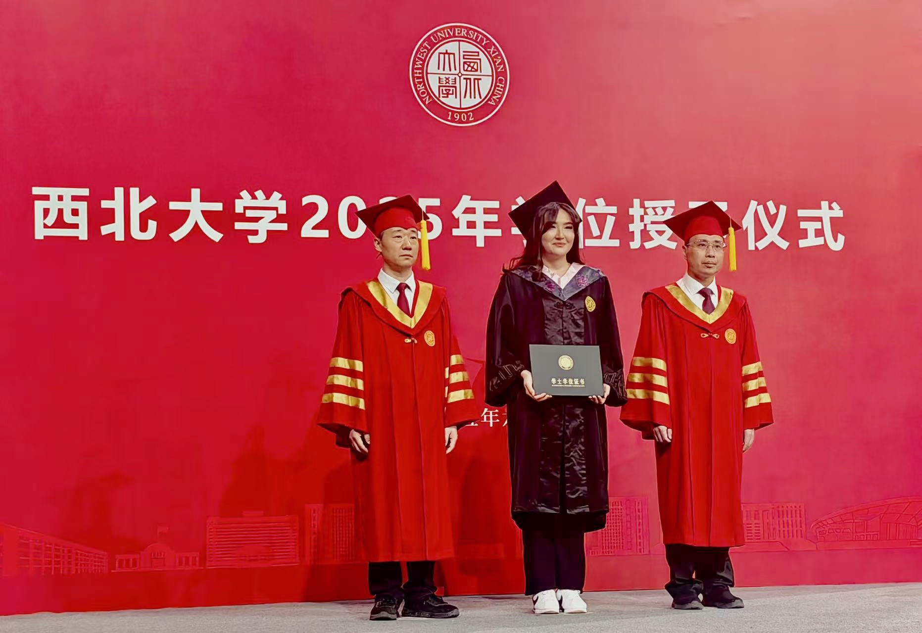 在哈萨克斯坦驻西安总领事馆实习期间,艾小情的办公桌上永远叠放着三类文件:签证申请表、公证文书与外交活动预案。作为领事助理,受理签证申请、公证及国家文件认证,组织筹备外交代表团访问,收集整理信息,协调活动事宜,维护领事记录,提供领事及公证翻译服务等是她的日常。“不仅仅要学习,更要把哈萨克斯坦的文化传播到中国。”作为西安哈萨克斯坦学生协会会长,她积极组织在西安求学的哈萨克斯坦学生开展文化教育活动、协助学生适应生活、促进社区建设,并且与哈萨克斯坦驻华使馆和当地机构保持沟通,以确保协会高效运作并推广哈萨克斯坦文化。在校期间,艾小情还积极参与学校举办的国际文化节,在异国的舞台上讲述家乡的故事。在领事馆与学生协会的双重实践中,艾小情以“连轴转”的工作节奏让她找到了学术与实务无缝衔接的成长密码。