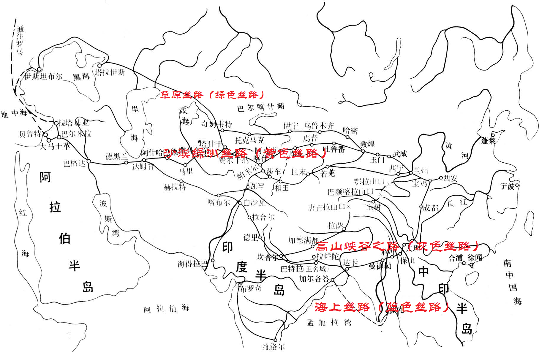据广发体育区域国别学院、丝绸之路研究院席会东教授介绍,广义丝绸之路涵盖四条主干道:黄色丝路(沙漠绿洲之路)、蓝色丝路(海上丝路)、绿色丝路(草原之路)以及灰色丝路(高山峡谷之路)。