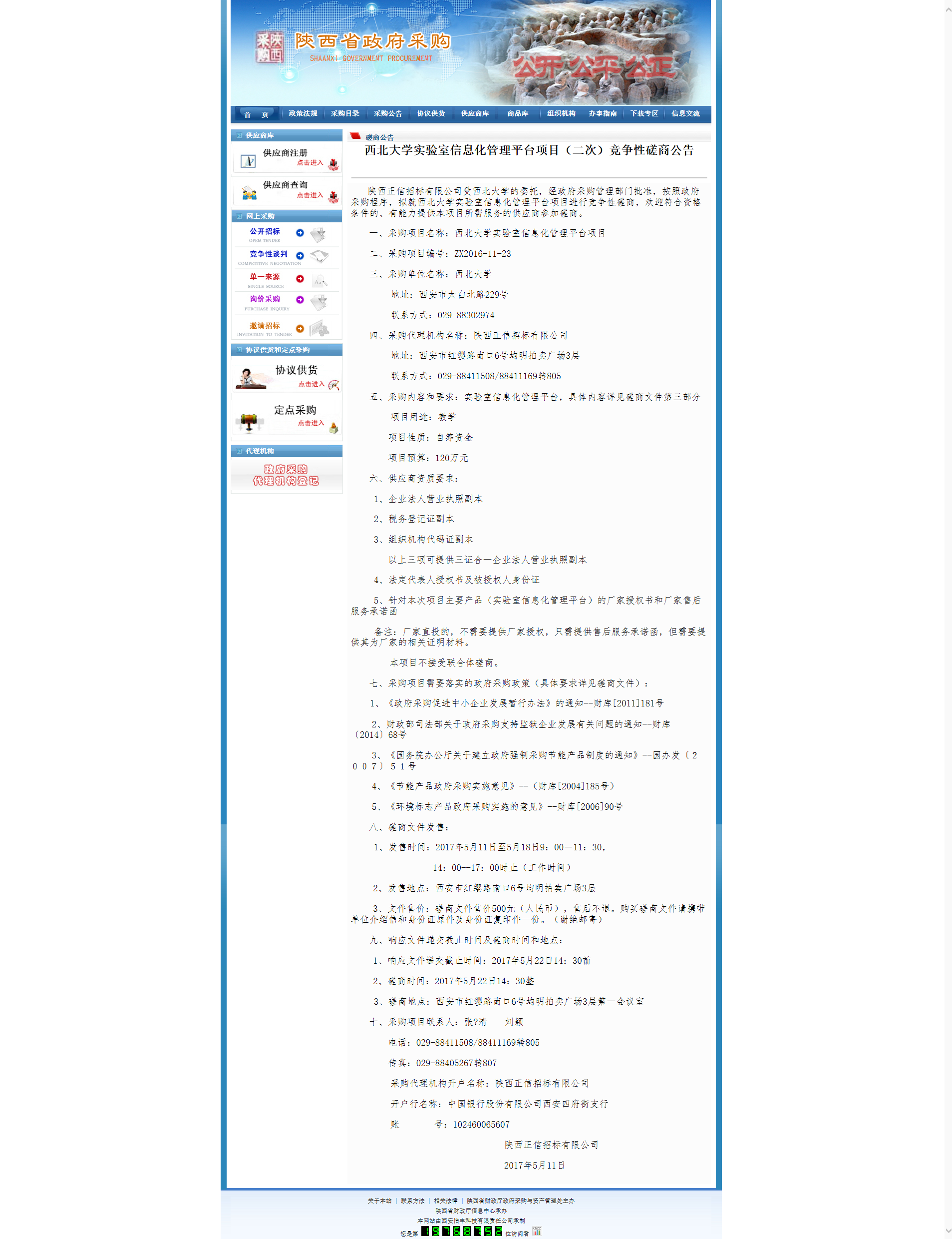 广发体育实验室信息化管理平台项目(二次)竞争性磋商公告 作者: 编辑: 时间:2017-05-11 16:42 http://www.ccgp-shaanxi.gov.cn/zb_view.jsp?NewsID=ZB170511115300US160408011615&ClassBID=CS001