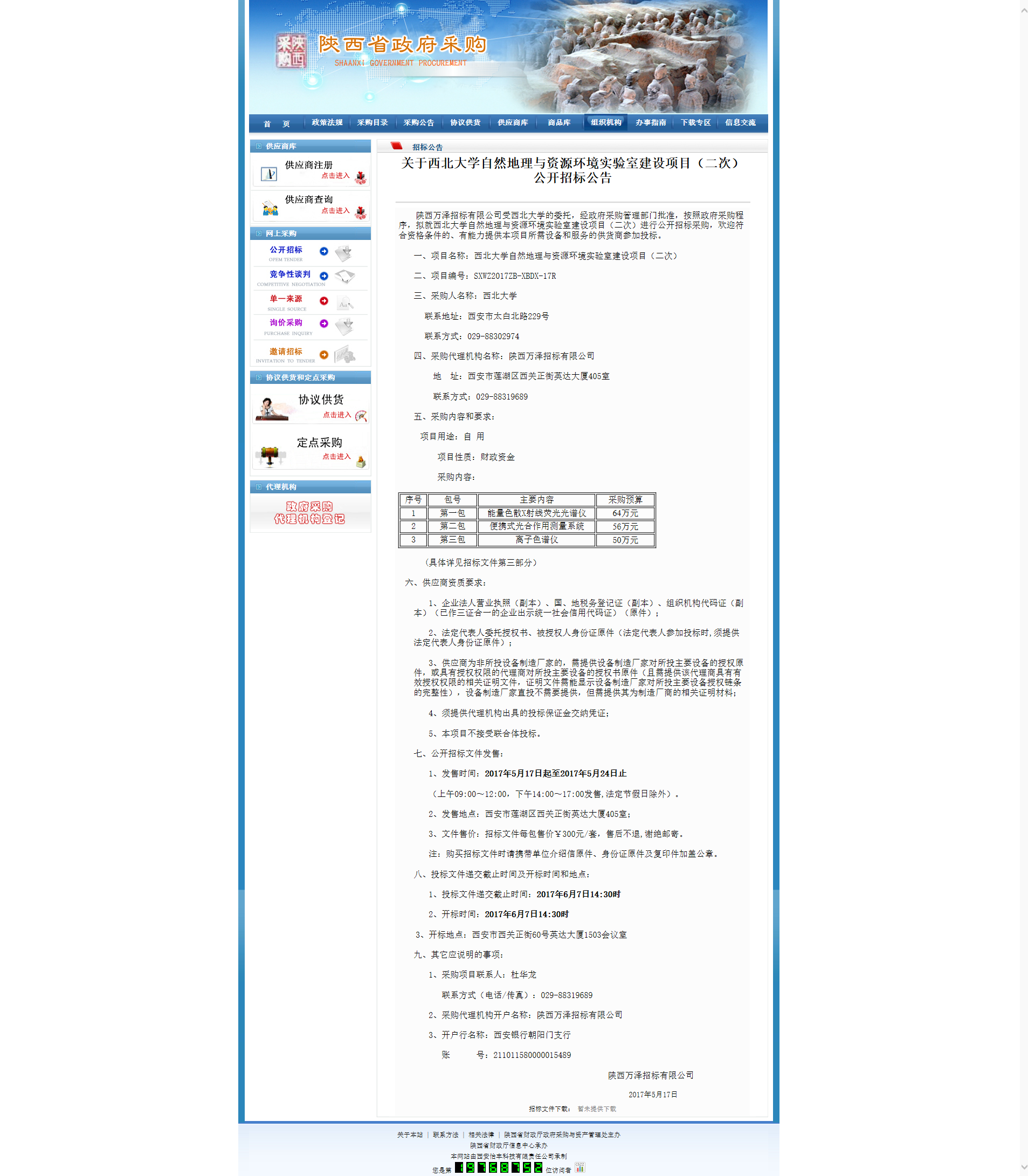 关于广发体育自然地理与资源环境实验室建设项目(二次)公开招标公告 作者: 编辑: 时间:2017-05-17 16:51 http://www.ccgp-shaanxi.gov.cn/zbxxs.jsp?NewsID=ZB170517133335US101028111214&ClassBID=C0001
