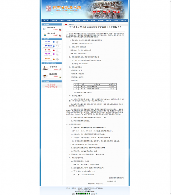 关于广发体育多媒体语言实验室采购项目公开招标公告 作者: 编辑: 时间:2017-06-22 16:25 http://www.ccgp-shaanxi.gov.cn/zbxxs.jsp?NewsID=ZB170622125342US101028111214&ClassBID=C0001