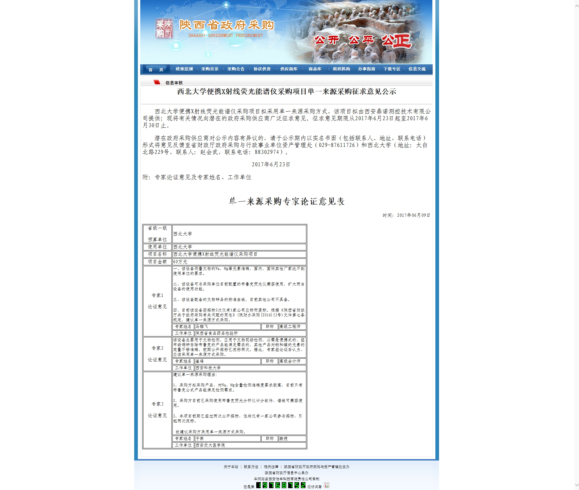 广发体育便携X射线荧光能谱仪采购项目单一来源采购征求意见公示 作者: 编辑: 时间:2017-06-28 16:09 http://www.ccgp-shaanxi.gov.cn/publicityTool.jsp?NewsID=GS170623162954US090115094155&ClassBID=T0001