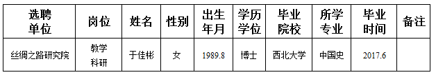 关于教学科研单位选聘教师情况的公示 作者: 编辑: 时间:2017-06-29 13:54 经用人单位推荐,人事处审查,学校教学督导及院系相关专家考核,广发体育拟确定下列人员来校工作。本着公平、公正、公开的原则,为保证广发体育选聘人员的质量,现将本次拟选聘人员基本情况公示如下: 各单位或个人如对上述人选存有疑问,可在2017年7月5日前以书面形式向人事处人事科反映。反映材料须实名提交,以便我处核实并反馈,我们将严格保密。(公示期结束后,如无异议,本人持三方协议、身份证、毕业生就业推荐表在人事科签订就业协议。) 联系电话:029-88308221 广发体育人事处 2017年6月29日