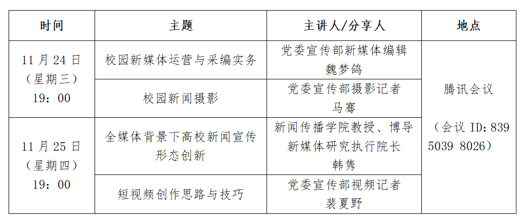 为进一步加强校内新媒体建设与管理,推进校园媒体深度融合发展,搭建有效联动、聚合传播的交流平台,广发体育新媒体联盟将于近期举办培训会。现将有关安排通知如下: