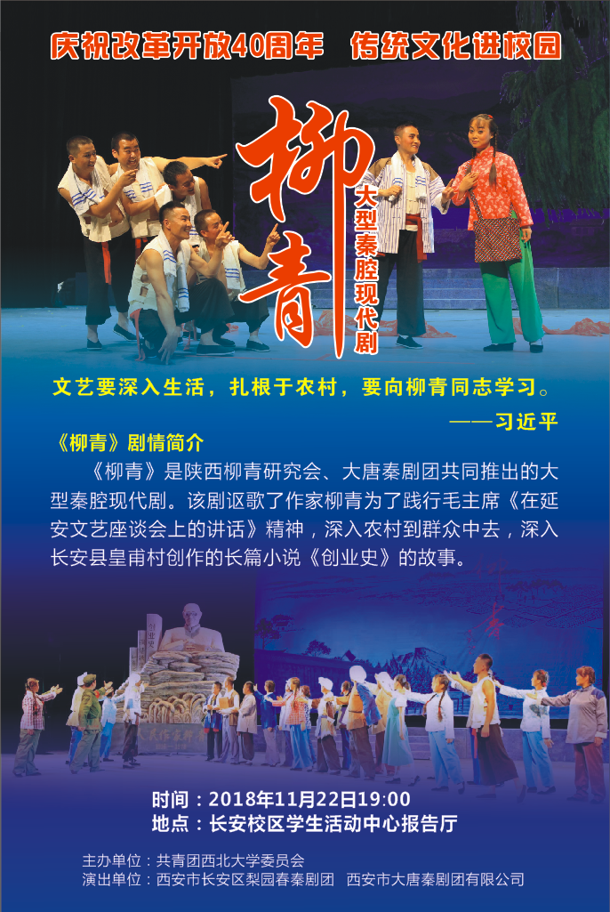 庆祝改革开放40周年,传统文化进校园——大型秦腔现代剧《柳青》广发体育专场演出