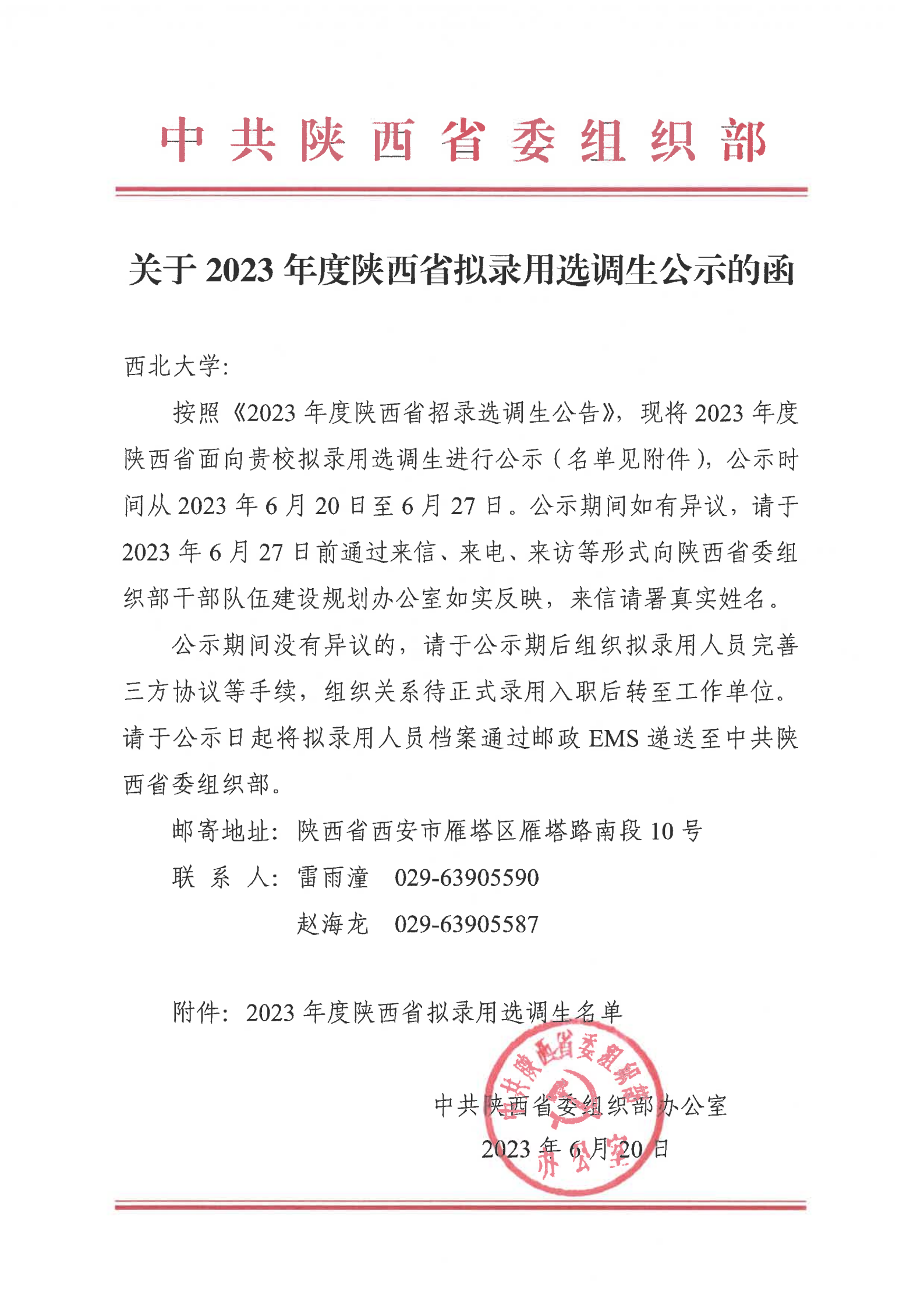 2023年度陕西省面向广发体育拟录用选调生名单公示