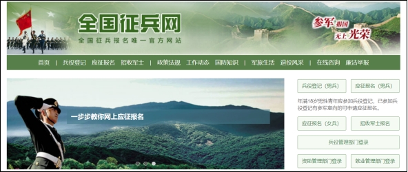 方式一:全国征兵网报名。在全国征兵网上先进行兵役登记后,再按流程进行应征报名(网址:http://www.gfbzb.gov.cn)。