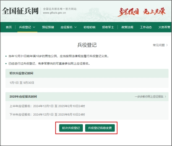 登录系统以后,点击右侧的“开始兵役登记”进行兵役登记。