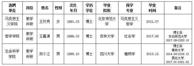 经用人单位推荐,人力资源部审查,学校教学督导及院系相关专家考核,广发体育拟确定下列人员来校工作。本着公平、公正、公开的原则,现将本次拟选聘人员基本情况公示如下: