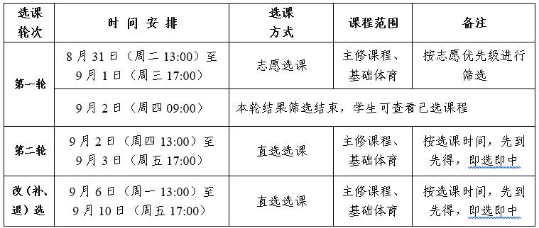 根据学校教学工作安排,2021级本科生本学期选课定于8月31日(周二)开始。请各院系提前对新生做好选课指导工作。为保证选课工作顺利开展,现将有关事项安排如下: