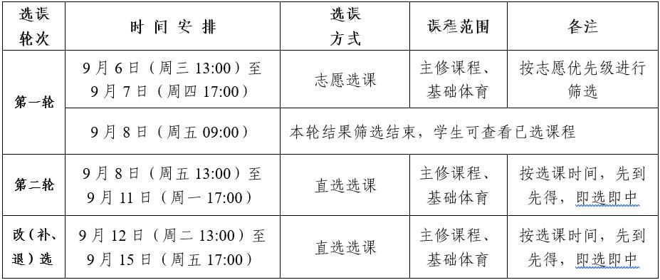 1.选课分三轮进行,具体时间如下: