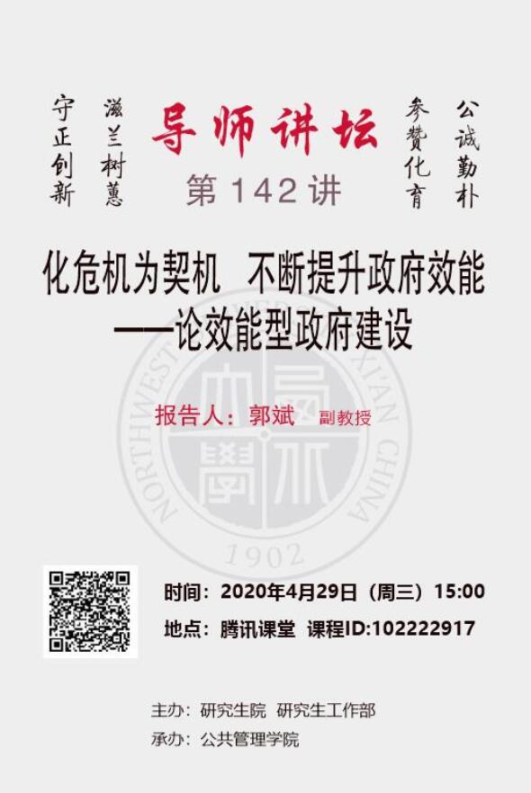 导师讲坛第142讲:化危机为契机 不断提升政府效能——论效能型政府建设