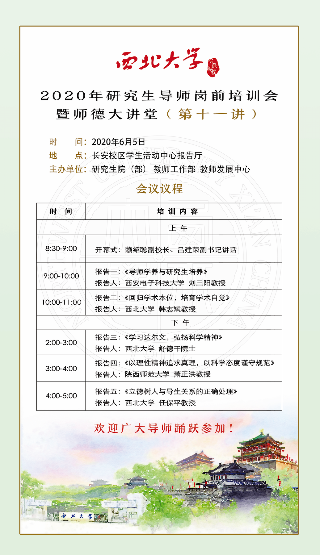 2020年研究生导师岗前培训会暨师德大讲堂(第十一讲)