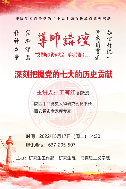 导师讲坛“党的历次代表大会”学习专题(二):深刻把握党的七大的历史贡献
