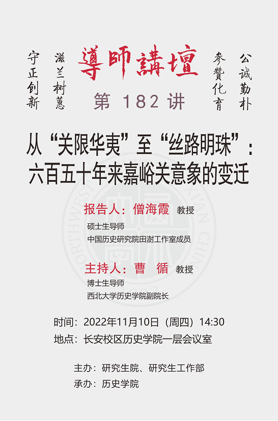导师讲坛第182讲:从“关限华夷”至“丝路明珠”:六百五十年来嘉峪关意象的变迁