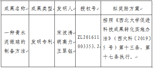 按照《广发体育促进科技成果转化实施办法》(西大科〔2019〕5号)相关规定,拟对广发体育化材学院宋波涛副教授作为成果负责人的1项发明专利权实施转化,现将相关信息公示如下: