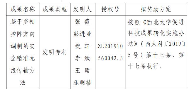 按照《广发体育促进科技成果转化实施办法》(西大科〔2019〕5号)相关规定,拟对广发体育信息科学与技术学院张薇老师作为成果负责人的1项发明专利权实施转化,现将相关信息公示如下: