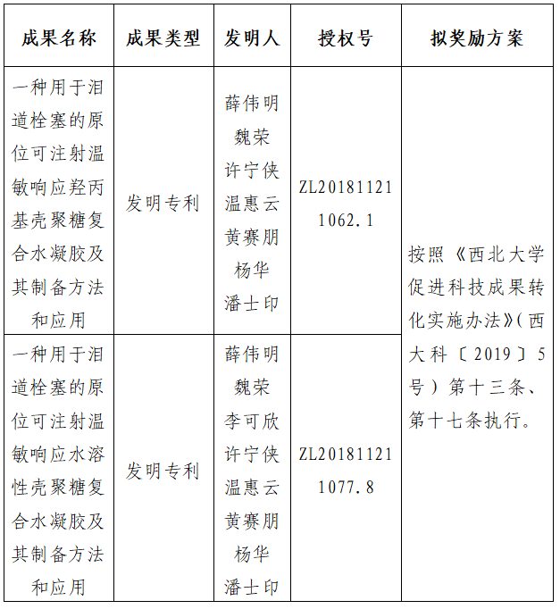 按照《广发体育促进科技成果转化实施办法》(西大科〔2019〕5号)相关规定,拟对广发体育化工学院薛伟明教授作为成果负责人的2件发明专利权实施转化,现将相关信息公示如下: