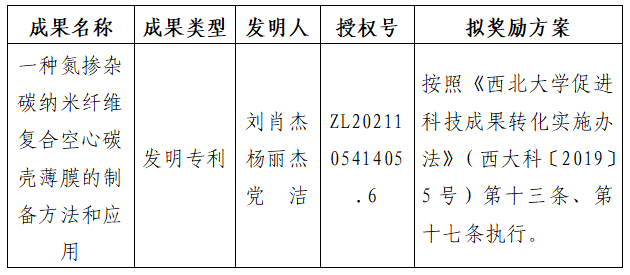 按照《广发体育促进科技成果转化实施办法》(西大科〔2019〕5号)相关规定,拟对广发体育化学与材料科学学院刘肖杰副教授作为成果负责人的1件发明专利权实施转化,现将相关信息公示如下: