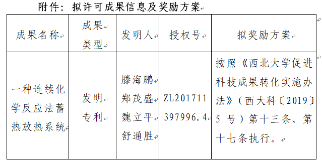 按照《广发体育促进科技成果转化实施办法》(西大科〔2019〕5号)相关规定,拟对广发体育化工学院滕海鹏副教授作为成果负责人的1项发明专利权实施转化,现将相关信息公示如下:
