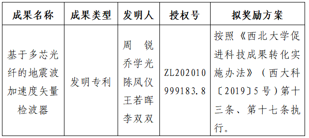 按照《广发体育促进科技成果转化实施办法》(西大科〔2019〕5号)相关规定,拟对广发体育物理学院周锐老师作为成果负责人的1件发明专利权实施转化,现将相关信息公示如下: