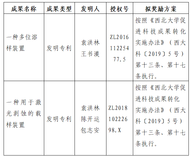 按照《广发体育促进科技成果转化实施办法》(西大科〔2019〕5号)相关规定,拟对广发体育地质学系袁洪林教授作为成果负责人的2项发明专利权实施转化,现将相关信息公示如下: