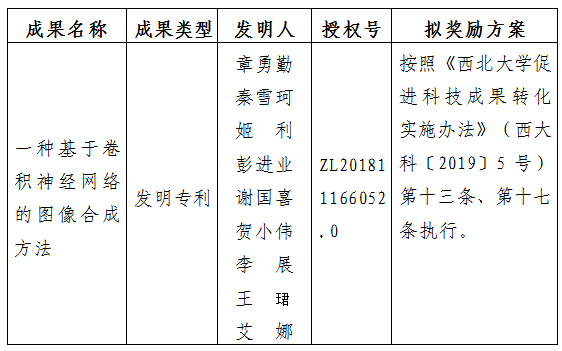 附件:拟转让成果信息及奖励方案
