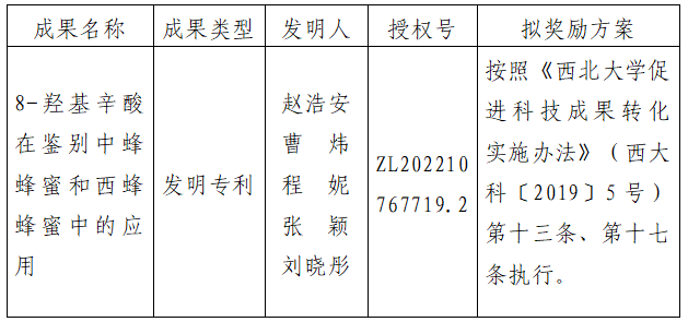 按照《广发体育促进科技成果转化实施办法》(西大科〔2019〕5号)相关规定,拟对广发体育食品科学与工程学院赵浩安副教授作为成果负责人的1项发明专利权实施转化,现将相关信息公示如下: