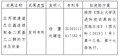 按照《广发体育促进科技成果转化实施办法》(西大科〔2019〕5号)相关规定,拟对广发体育化学与材料科学学院杨鹰副教授作为成果负责人的1项发明专利权实施转化,现将相关信息公示如下: