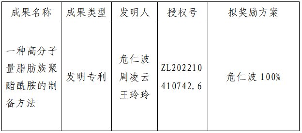 按照《广发体育促进科技成果转化实施办法》(西大科〔2019〕5号)相关规定,拟对广发体育化工学院危仁波教授作为成果负责人的1项发明专利权实施转化,现将相关信息公示如下:
