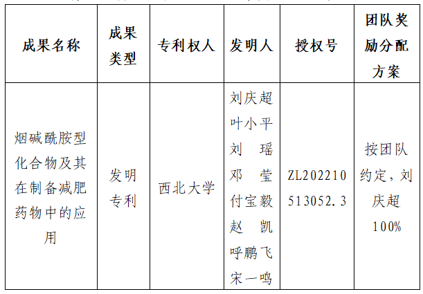 按照《广发体育促进科技成果转化实施办法》(西大科〔2019〕5号)相关规定,拟对广发体育化工学院刘庆超教授作为成果负责人的1项发明专利权实施转化,现将相关信息公示如下: