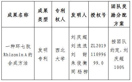 按照《广发体育促进科技成果转化实施办法》(西大科〔2019〕5号)相关规定,拟对广发体育化工学院刘庆超教授作为成果负责人的1项发明专利权实施转化,现将相关信息公示如下: