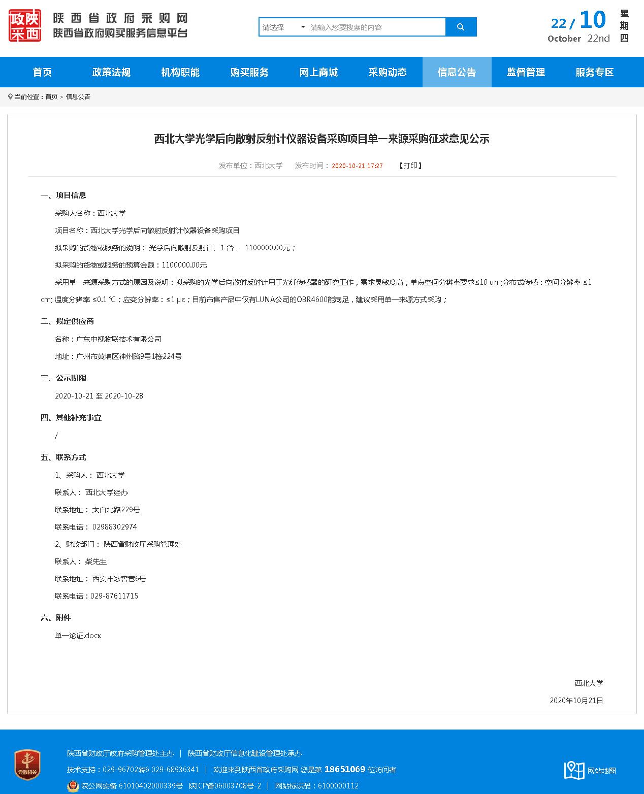 广发体育光学后向散射反射计仪器设备采购项目单一来源采购征求意见公示