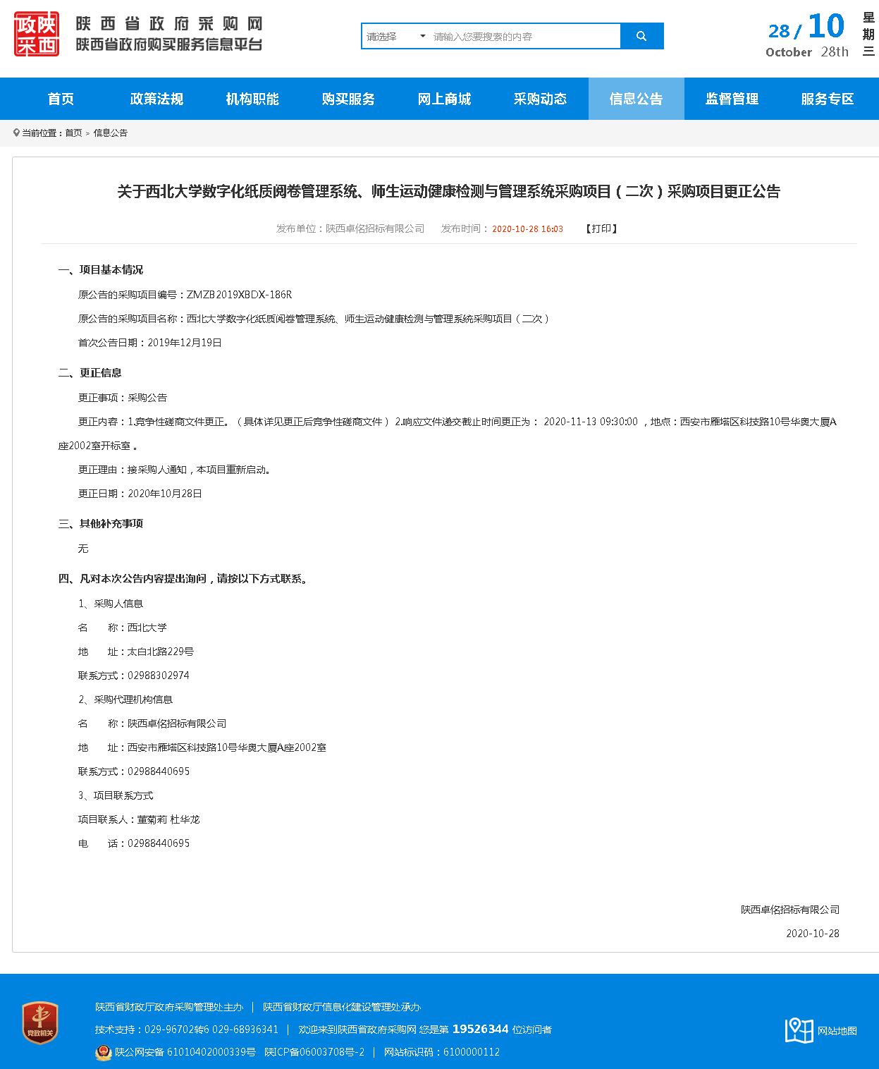 关于广发体育数字化纸质阅卷管理系统、师生运动健康检测与管理系统采购项目(二次)采购项目更正公告