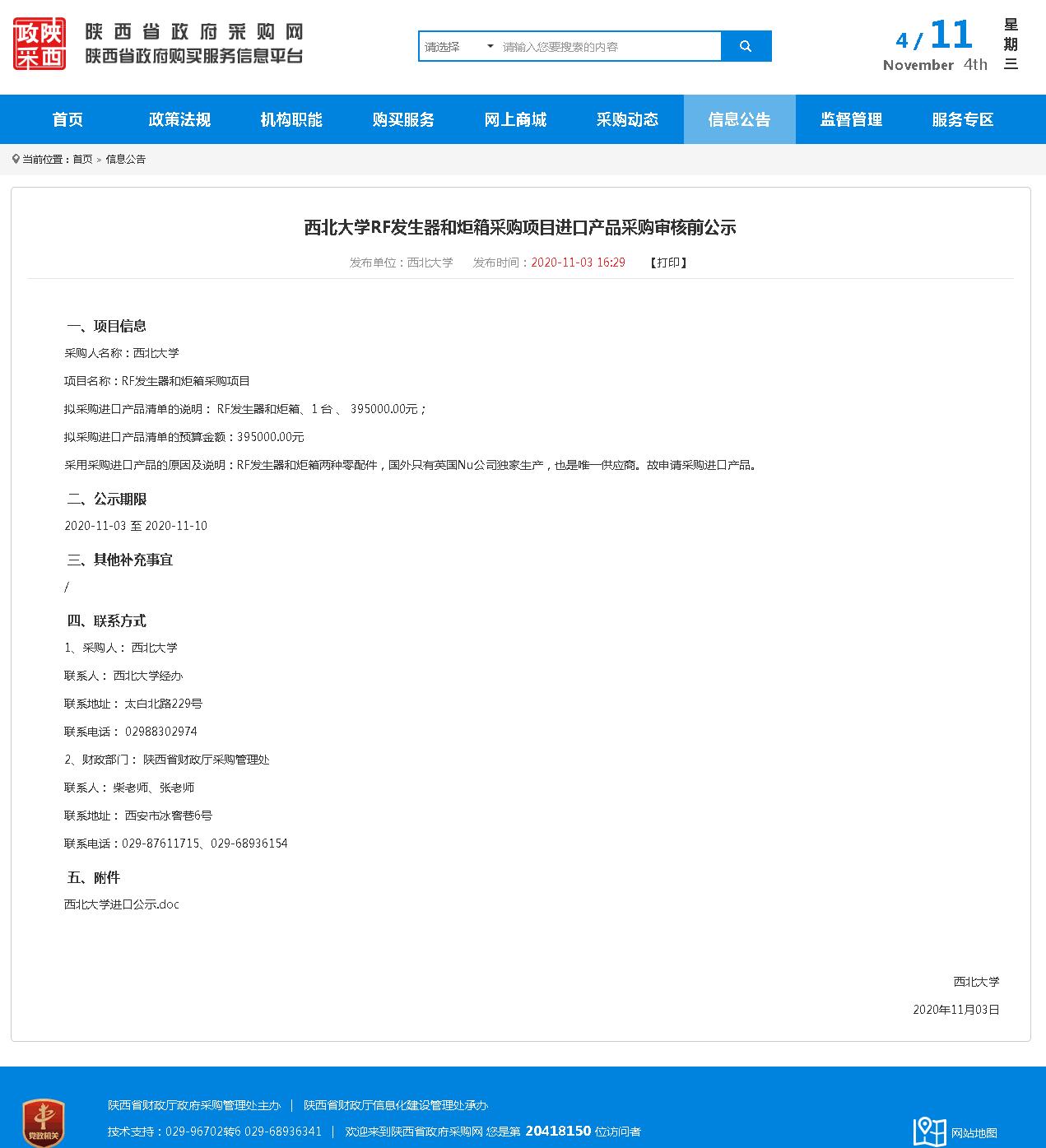 广发体育RF发生器和炬箱采购项目进口产品采购审核前公示