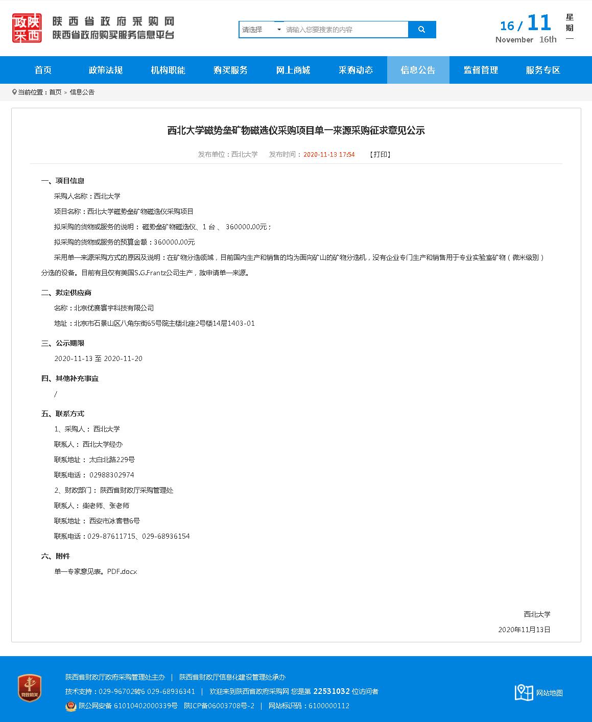 广发体育磁势垒矿物磁选仪采购项目单一来源采购征求意见公示