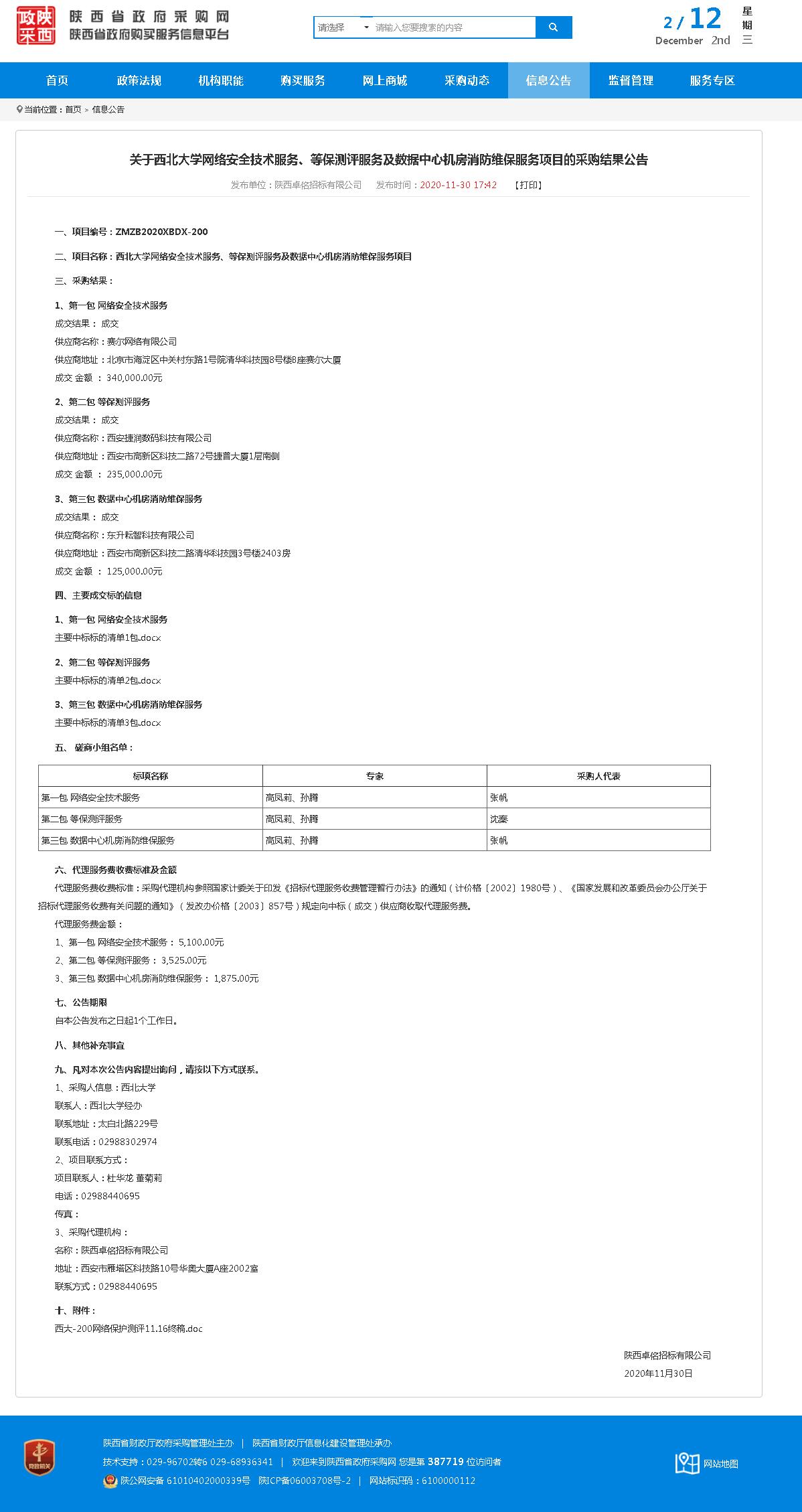 广发体育网络安全技术服务、等保测评服务及数据中心机房消防维保服务项目的采购结果公告