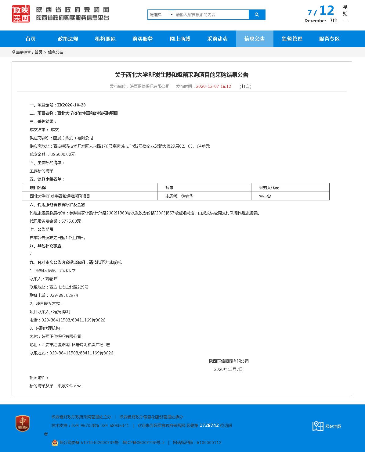 广发体育RF发生器和炬箱采购项目的采购结果公告
