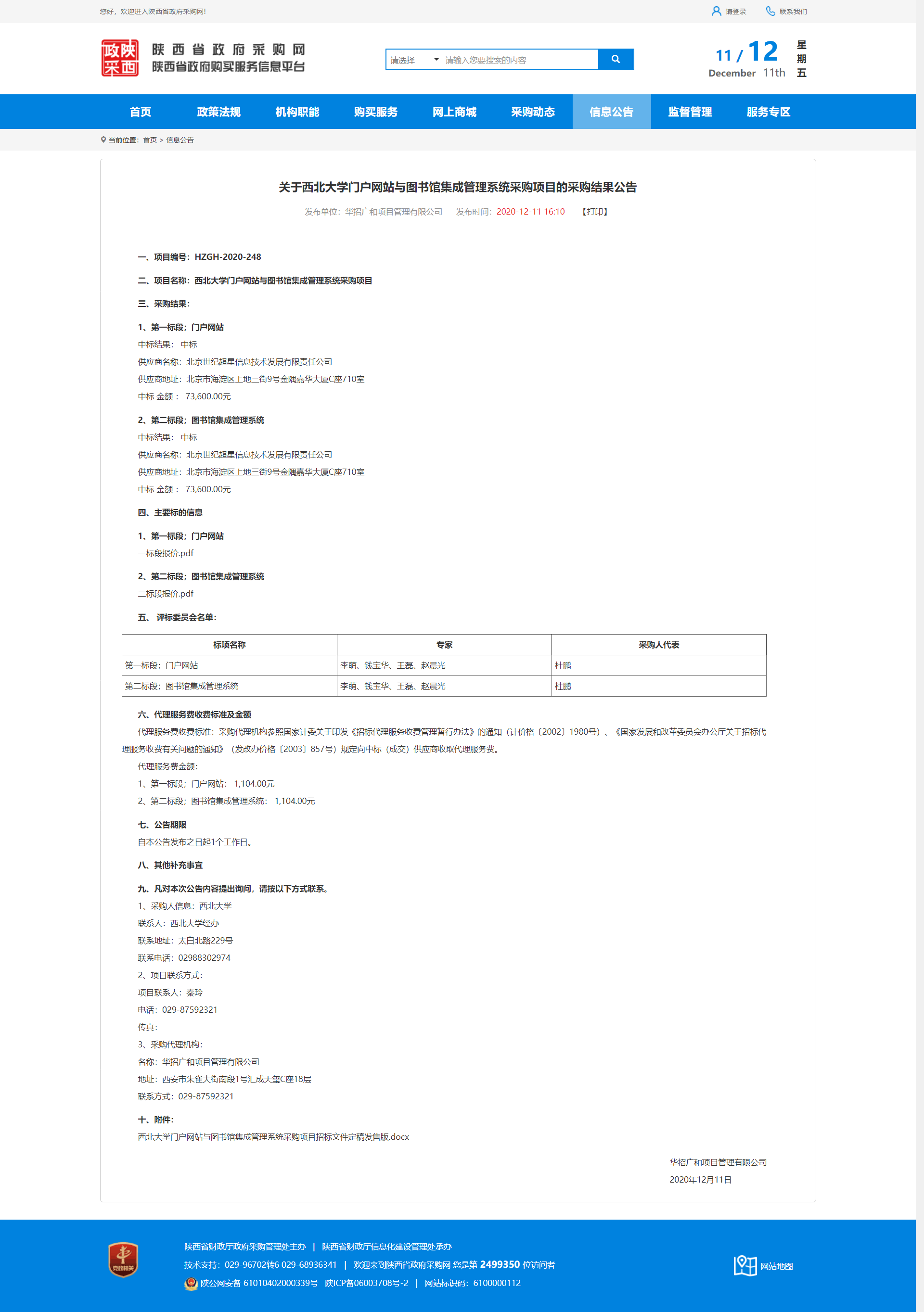 关于广发体育门户网站与图书馆集成管理系统采购项目的采购结果公告 作者: 编辑:薛利娟 时间:2020-12-11 原公告地址:http://www.ccgp-shaanxi.gov.cn/notice/noticeDetail.do?noticeguid=8a85be3275d5d5c2017650d7c2df14aa