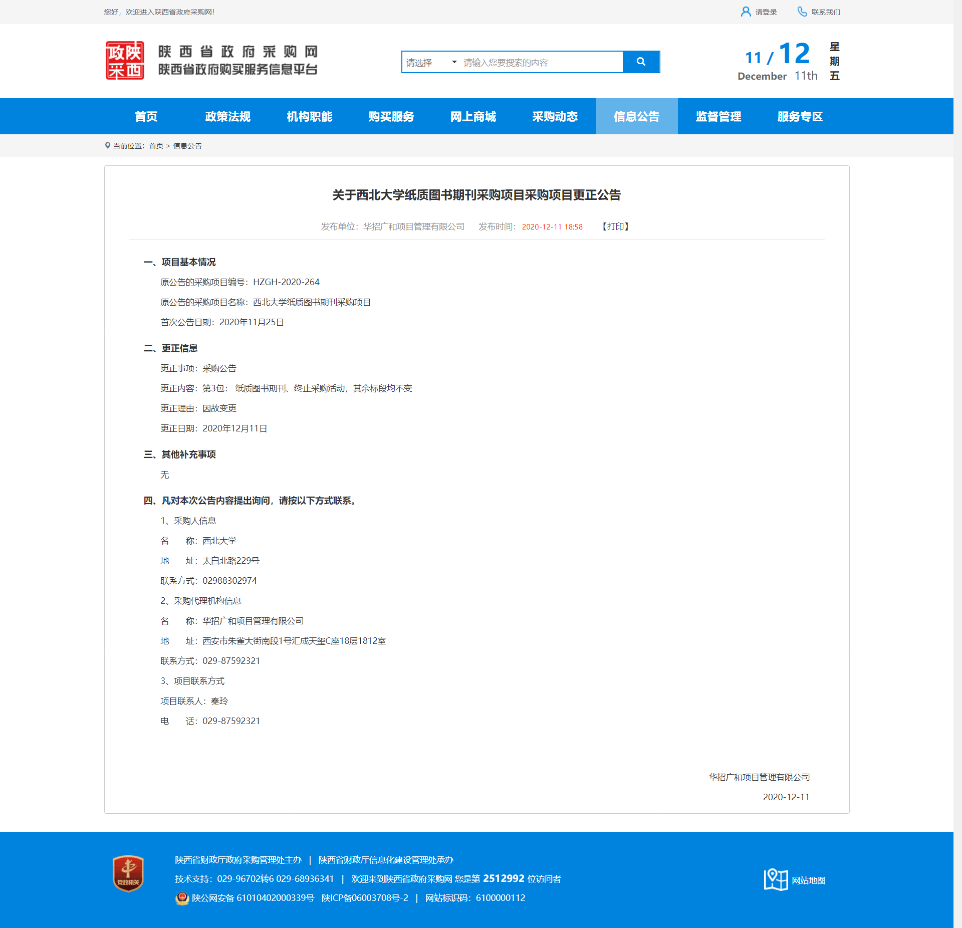 关于广发体育纸质图书期刊采购项目采购项目更正公告 作者: 编辑:薛利娟 时间:2020-12-11 原公告地址:http://www.ccgp-shaanxi.gov.cn/notice/noticeDetail.do?noticeguid=8a85be3475d5d52d017641b1340e7790