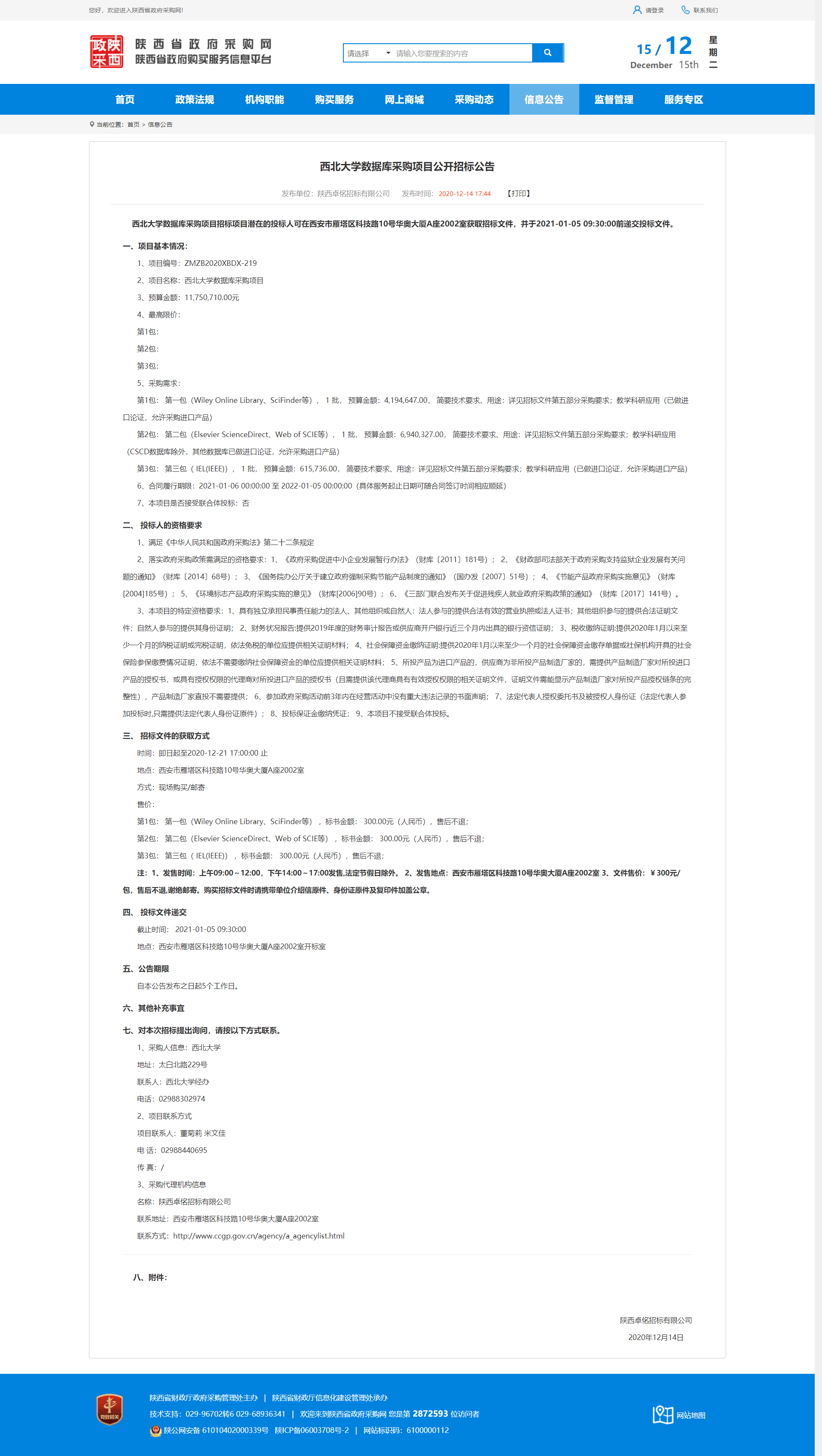广发体育数据库采购项目公开招标公告 作者: 编辑:薛利娟 时间:2020-12-15 原公告地址:http://www.ccgp-shaanxi.gov.cn/notice/noticeDetail.do?noticeguid=8a85be32765f9c9b0176607804921682