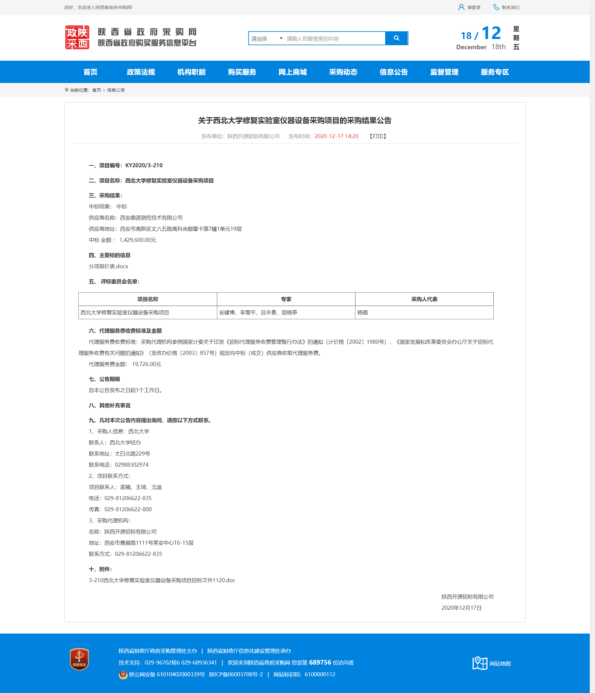 关于广发体育修复实验室仪器设备采购项目的采购结果公告 作者: 编辑:薛利娟 时间:2020-12-18 原公告地址:http://www.ccgp-shaanxi.gov.cn/notice/noticeDetail.do?noticeguid=8a85be34765f9eac01766f3cbcd749f6