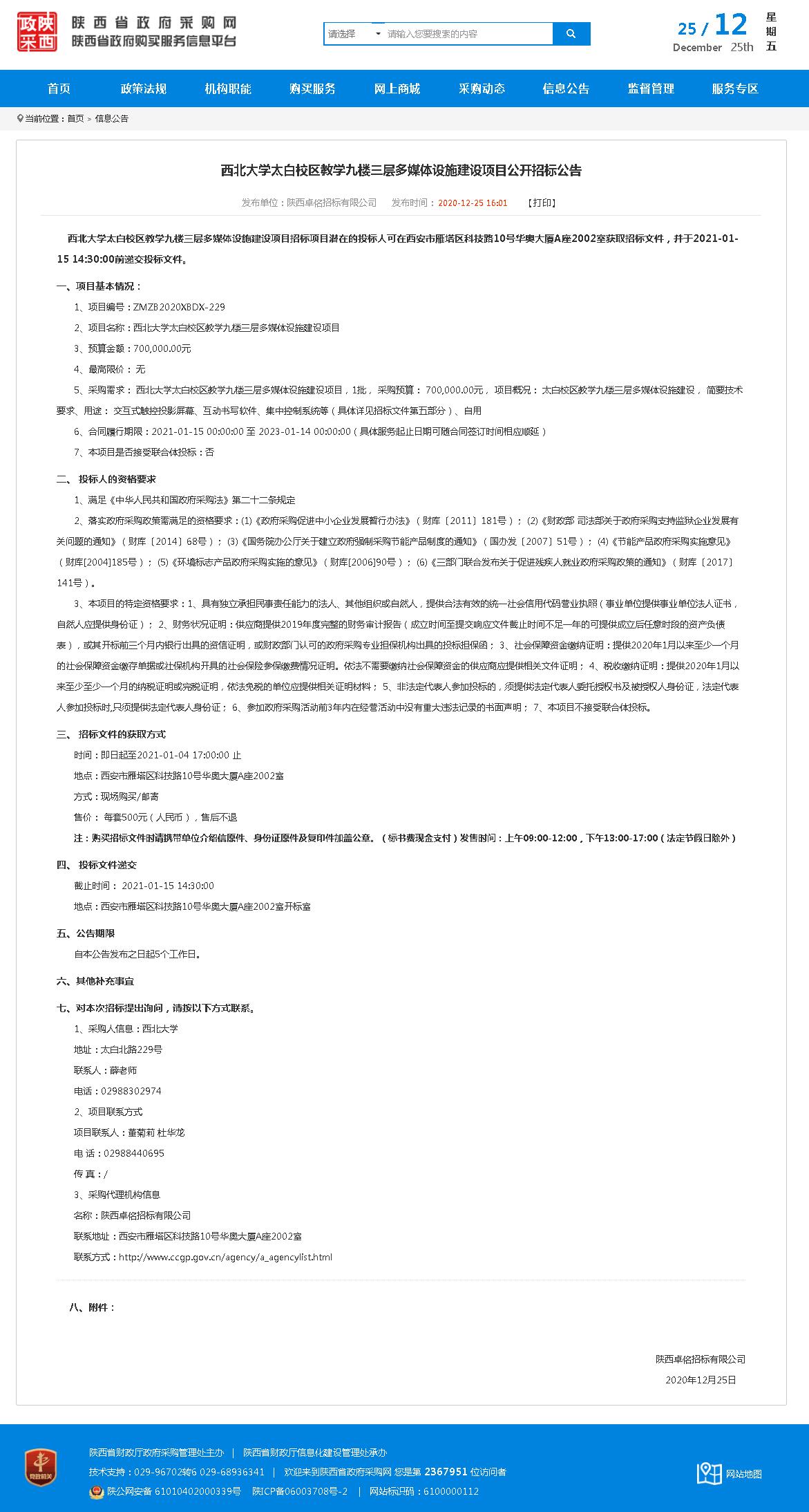 广发体育太白校区教学九楼三层多媒体设施建设项目公开招标公告