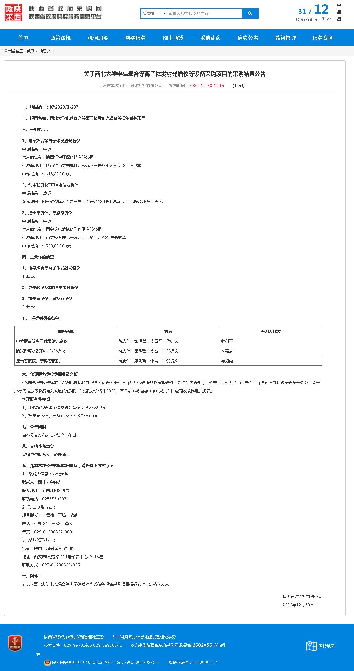 广发体育电感耦合等离子体发射光谱仪等设备采购项目的采购结果公告