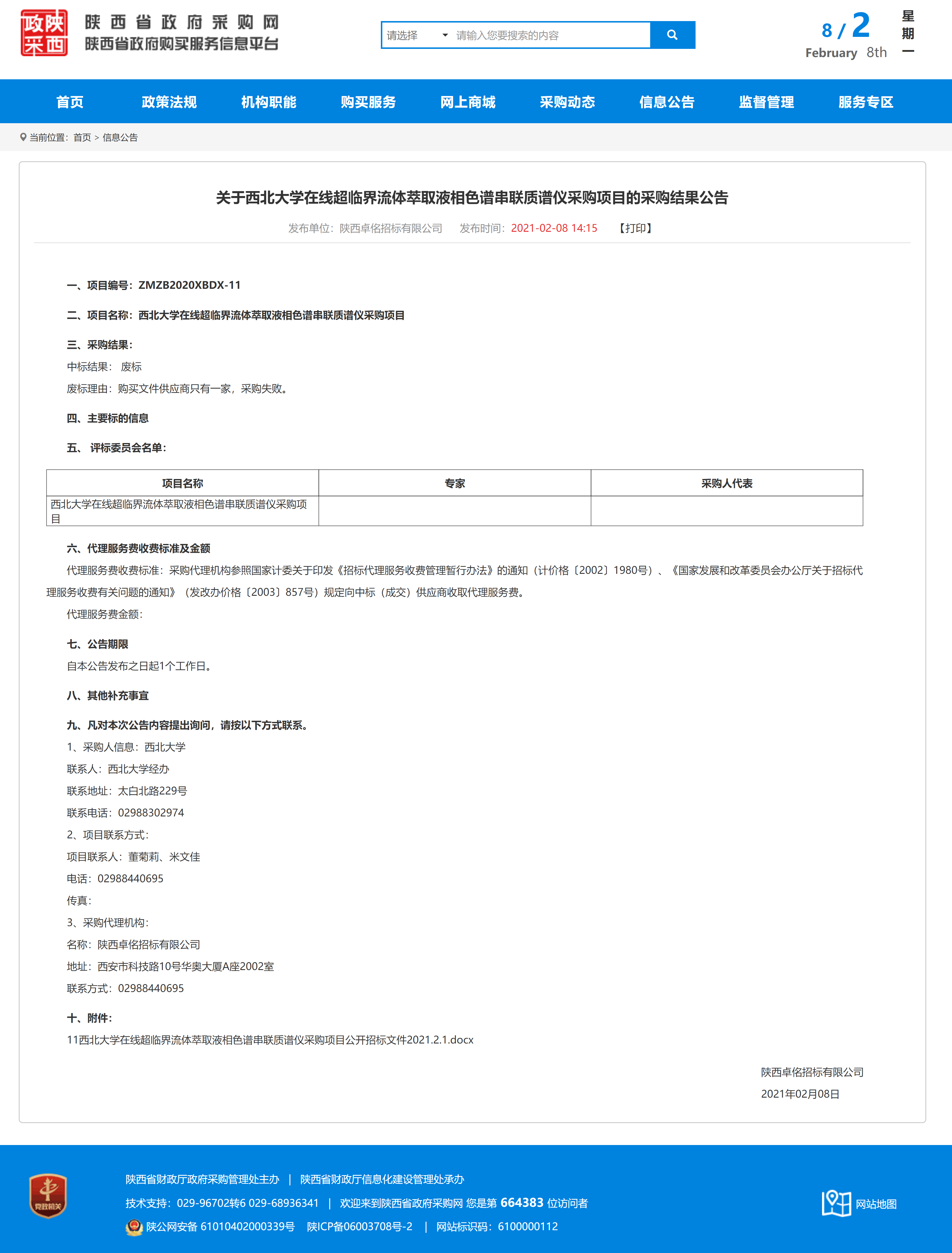 广发体育在线超临界流体萃取液相色谱串联质谱仪采购项目单一来源采购征求意见公示