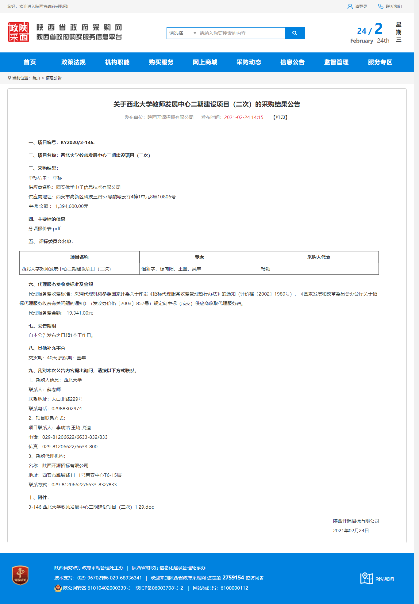 广发体育教师发展中心二期建设项目(二次)的采购结果公告 作者: 编辑:薛利娟 时间:2021-02-24 原公告地址:http://www.ccgp-shaanxi.gov.cn/notice/noticeDetail.do?noticeguid=8a85be3477b2ecb70177d2a0f8a67706