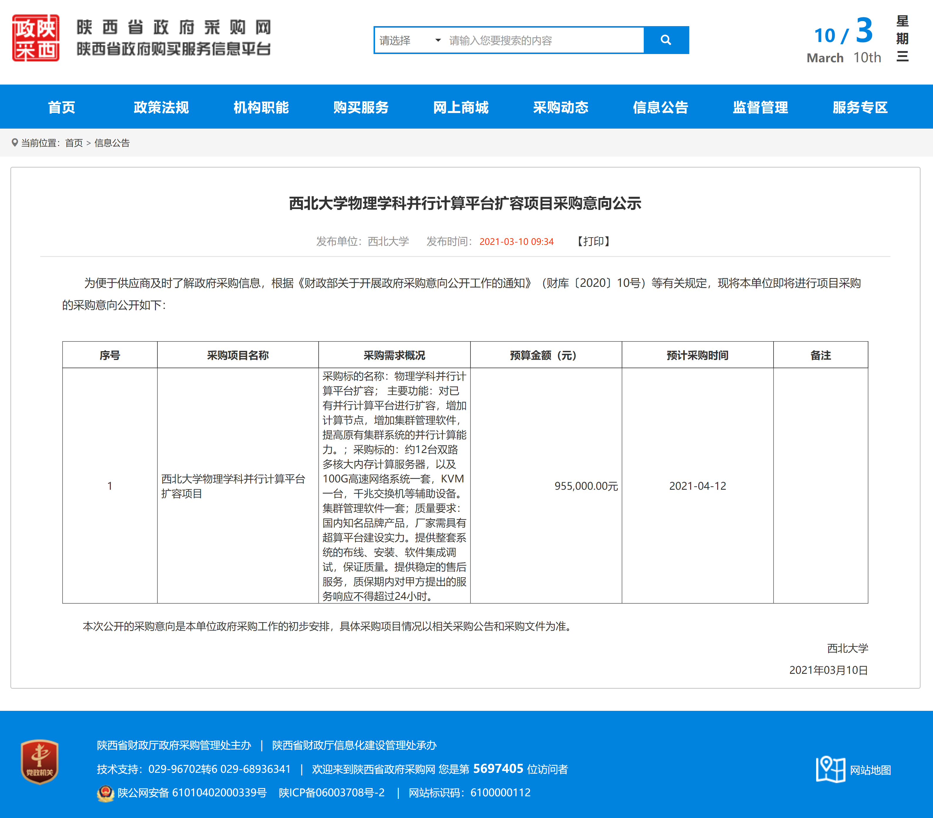广发体育物理学科并行计算平台扩容项目采购意向公示